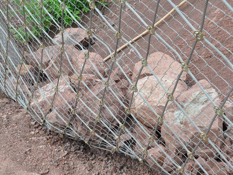 對于一些存在危險巖石的區域,我們可以增加錨桿長度,使縱向、橫向支撐繩通過錨桿的拉力加大對危巖的作用力,可以有效的控制危巖并加固,提高防護等級。為了是鋼絲繩網的預張拉更加充分,整體受力更加均勻,我們一般采用掛鉤的方式,掛鉤的方式適用于各種復雜的地形。同時我們需要保證鋼絲繩網在支撐繩的作用均勻受力,我們采取掛鉤的方式將鋼絲繩網固定在支撐繩賀茂趕上,再用縫合繩將其縫合。