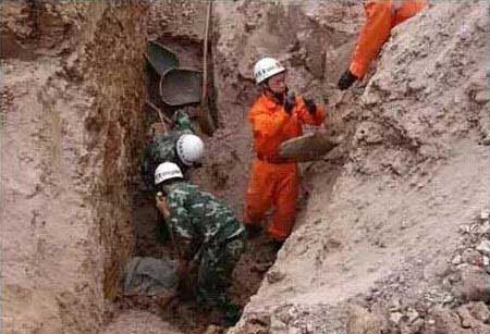 3). 堆積過多石塊的基坑容易發生邊坡塌方